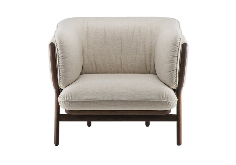 Stanley firmata da Luca Nichetto per De La Espada è una poltrona con rivestimento in tessuto o pelle e struttura in legno disponibile in diverse finiture.