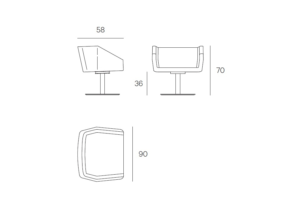 Hexagon firmata da Massimo Castagna per Henge è una poltrona girevole con rivestimento in pelle o tessuto. Base in acciaio con finitura in ottone brunito.