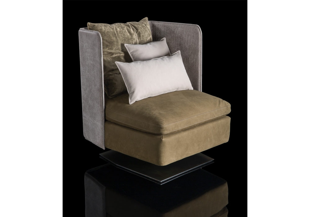 Human firmata da Massimo Castagna per Henge è una poltrona con rivestimento in pelle e base metallica.