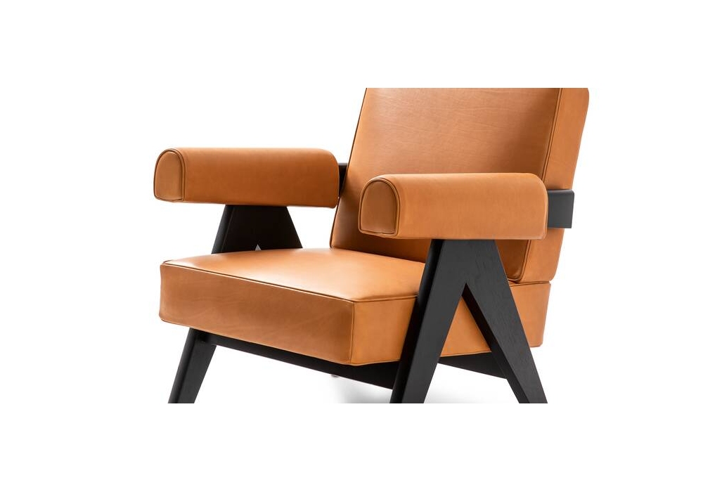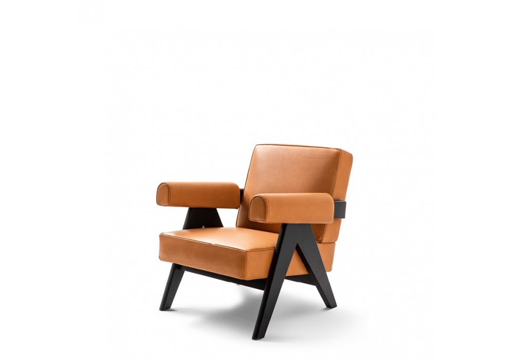 053 Capitol Complex Armchair firmata da Pierre Jeanneret per Cassina è una poltrona con schienale e seduta imbottita. Struttura in legno massello, disponibile nelle seguenti finiture: rovere naturale, tinto nero, tinto noce scuro o in teak.