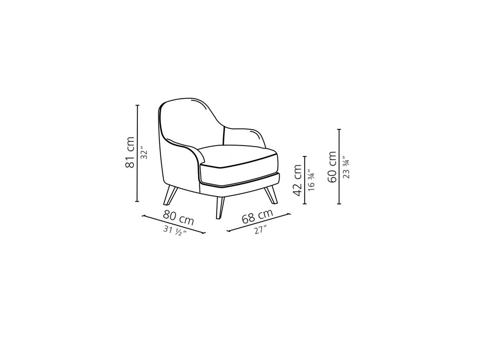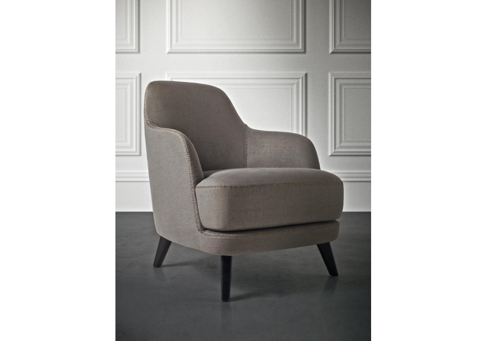 Liz firmata da Roberto Lazzeroni per Casamilano è una poltrona con struttura in multistrato di abete e pannelli in particelle di legno. Imbottitura in poliuretano espanso a densità differenziata. Piedi in massello di faggio tinto ebano. Cuciture ricamate. Rivestimento sfoderabile (tessuto) / fisso (pelle).