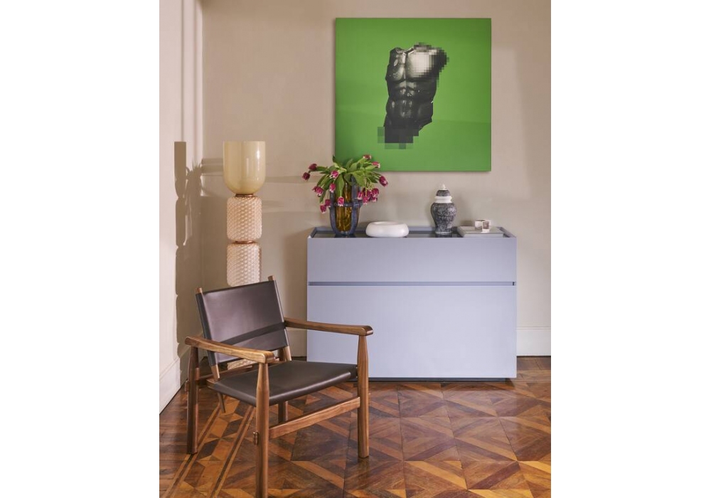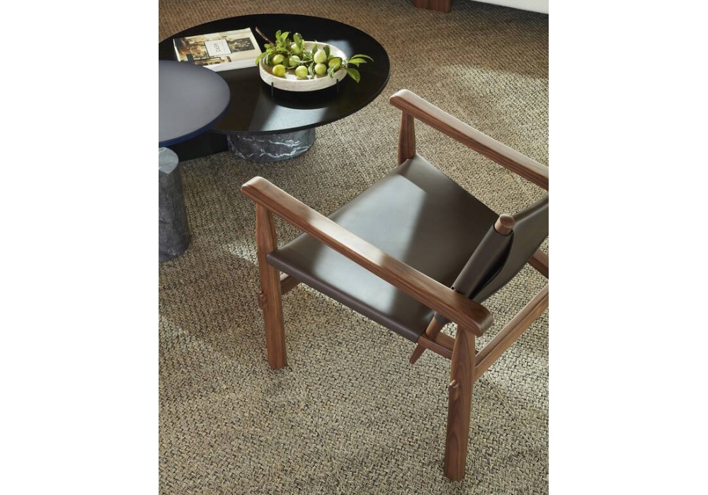 Doron Hotel firmata da Charlotte Perriand per Cassina è una poltrona con struttura in legno massello e rivestimento in cuoio o pelle con pelo.