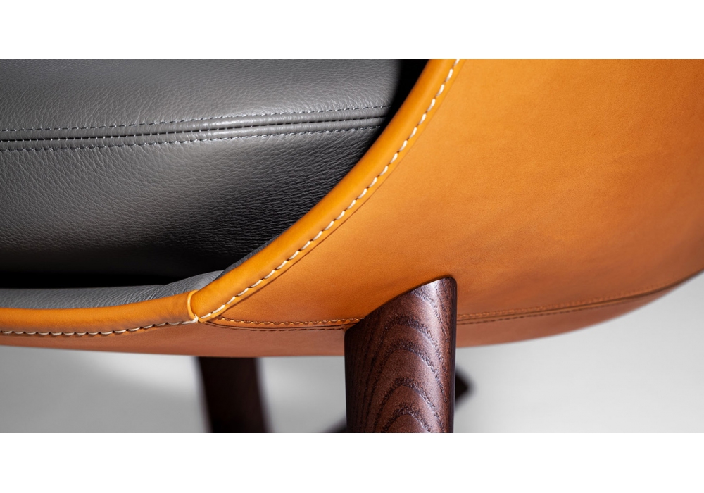Martha firmata da Roberto Lazzeroni per Poltrona Frau è una poltrona a dondolo con scocca in poliuretano rigido stampato. Scocca esterna rivestita in cuoio Saddle Extra, mentre la superficie interna è disponibile in Pelle Frau.