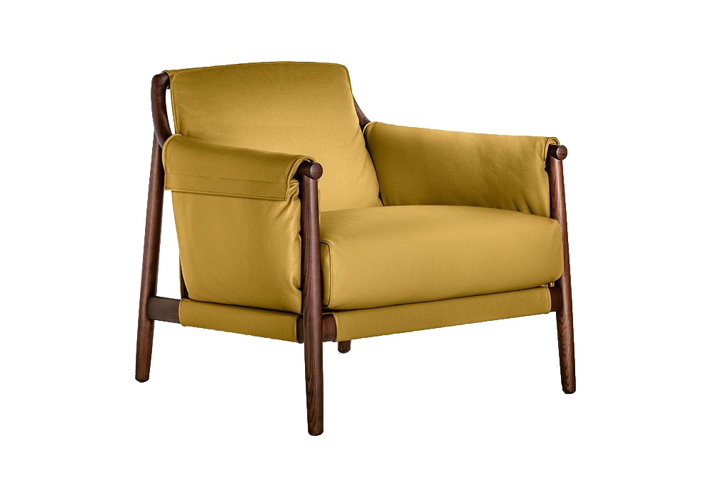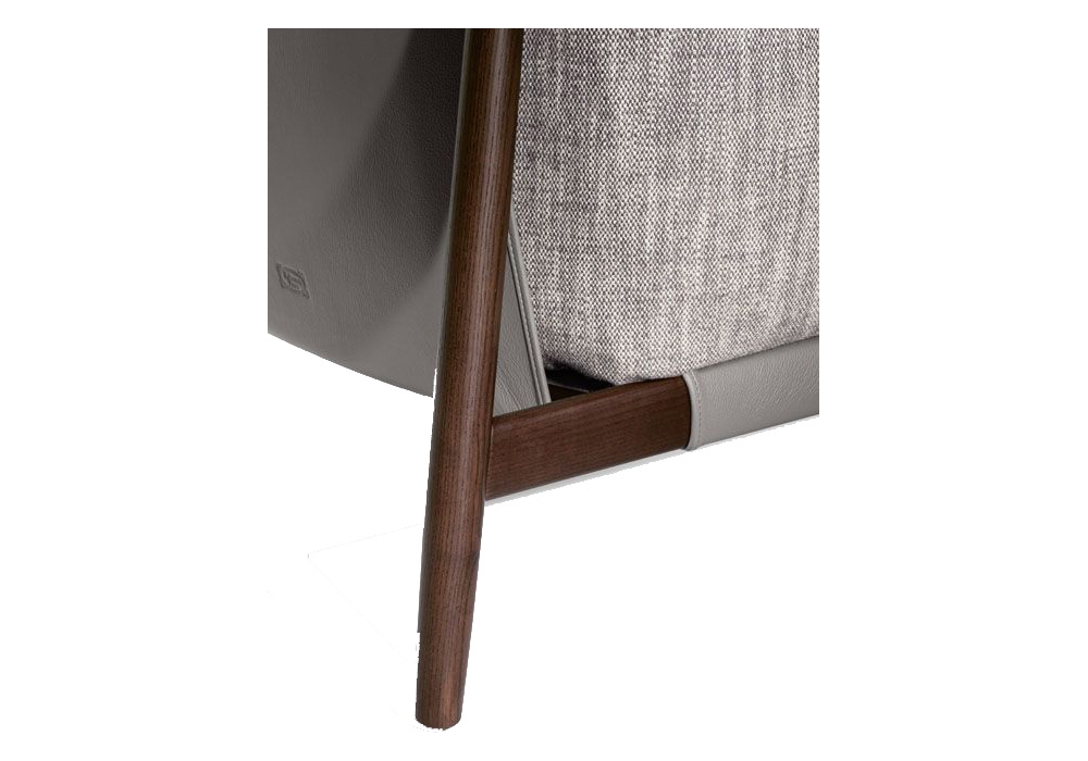 Times Lounge firmata da Spalvieri & Del Ciotto è una poltrona con struttura in legno massello di frassino e rivestimento in pelle o in combinazione pelle / tessuto. il supporto dei cuscini è garantito dalla superficie in cuoio che avvolge la parte inferiore, laterale e superiore della struttura in legno.