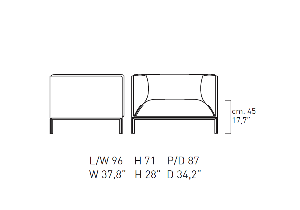 Clou firmata da Angelettiruzza per My Home Collection è una poltrona realizzata con struttura in legno rivestita in gomma poliuretanica e fibra di poliestere. Cuscini, seduta, braccioli e schienale sono con imbottitura in poliuretano indeformabile a quote differenziate rivestiti in tessuto sfoderabile. La base è in acciaio tubolare verniciato. Clou è disponibile in differenti finiture.