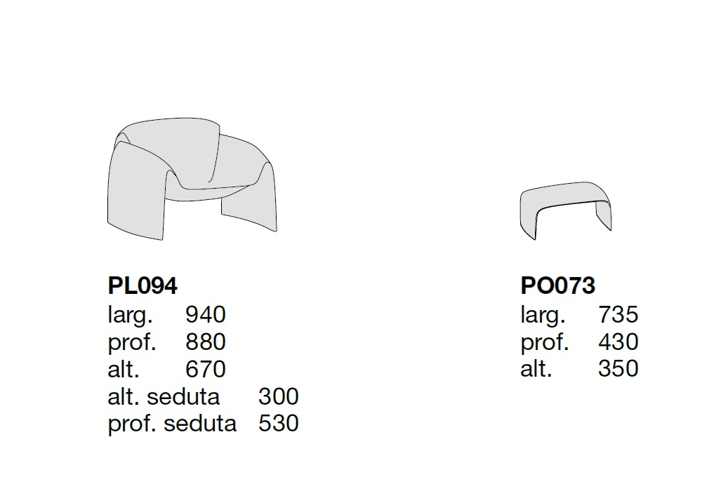 | Dimensioni pouf | 73.5 x 43 x H 35 cm |
