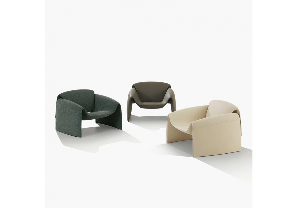 Le Club firmata da Jean-Marie Massaud per Poliform è una poltrona con rivestimento disponibile in tessuto o pelle, struttura in acciaio e seduta in poliuretano.