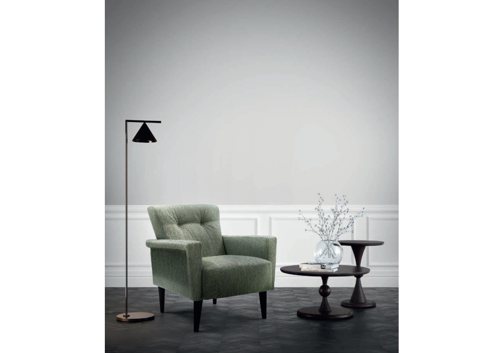 Nicole firmata da Giuseppe Manzoni per Bodema è una poltrona realizzata con struttura e schienale rivestiti, gambe in frassino tinto wengè o noce. Schienale in diverse altezze e rivestimento in diverse finiture.