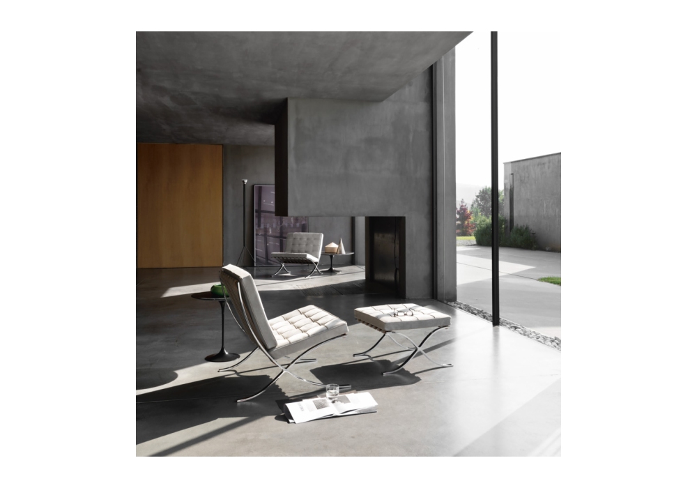 Barcelona firmata da Ludwig Mies van der Rohe per Knoll è una poltrona con struttura in acciaio cromato molato e lucidato a mano con finitura a specchio e rivestimento in pelle. È disponibile in diverse finiture.