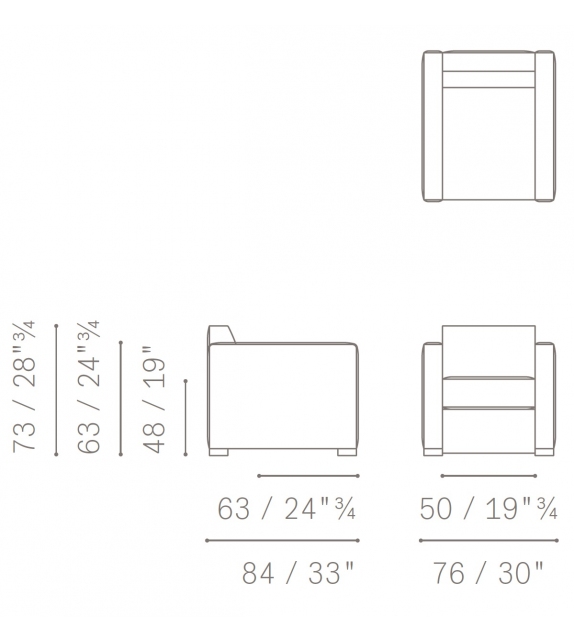Linea A Poltrona Frau: Una seduta morbida e profonda per un divano a due o tre posti e una poltrona dalle dimensioni volutamente ridotte ma accoglienti e confortevoli. La purezza formale valorizza morbidezza e qualità della Pelle Frau®.
