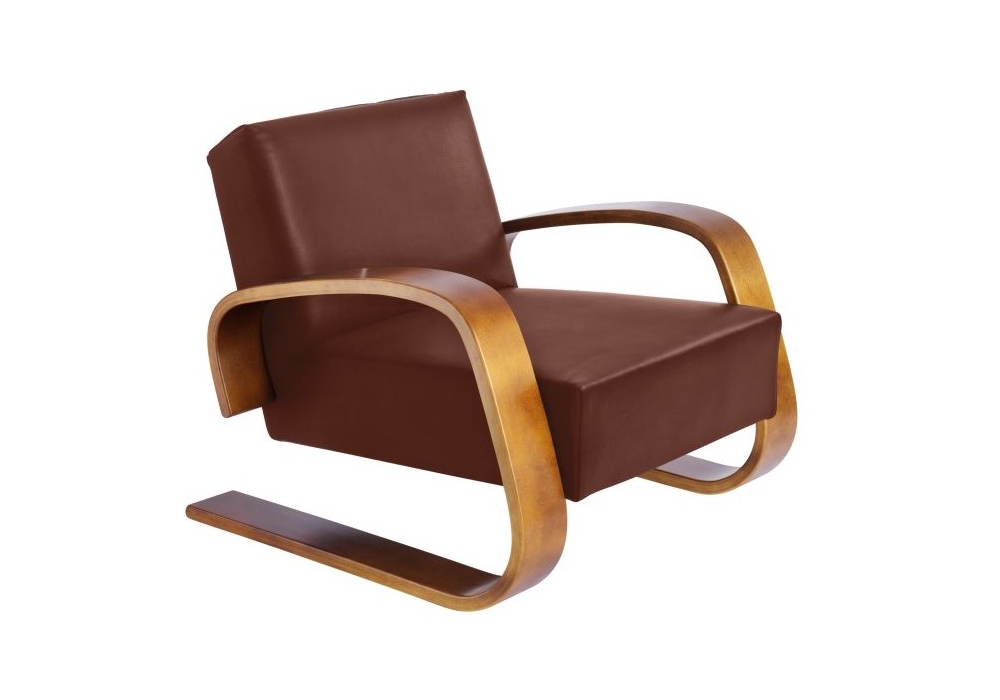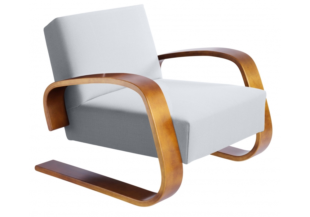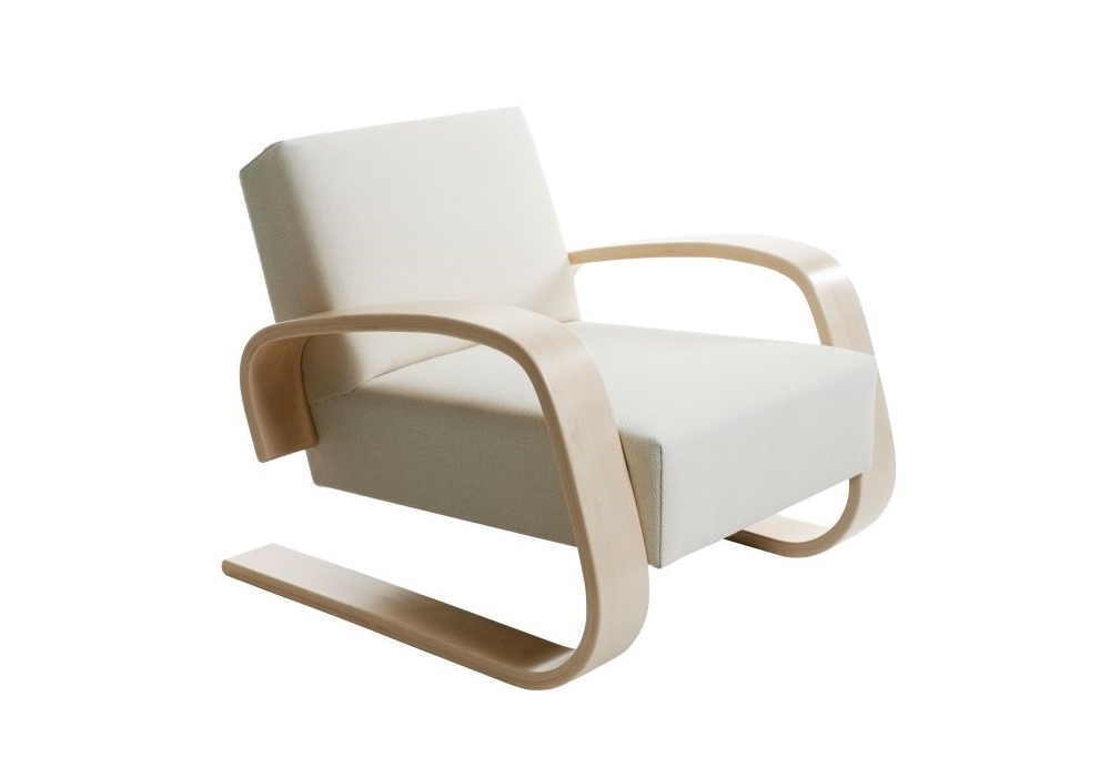 Armchair 400 "Tank" firmata da Alvar Aalto per Artek è una poltrona realizzata con rivestimento in tessuto o pelle e struttura tinta o laccata. Disponibile in diverse finiture.