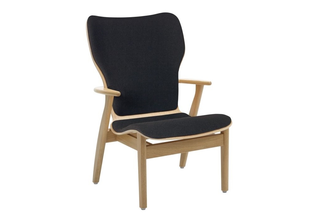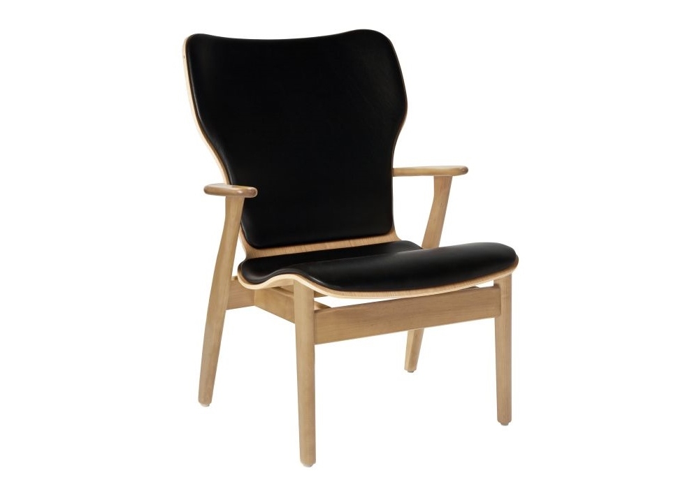 Domus firmata da Ilmari Tapiovaara per Artek è una poltrona realizzata con struttura in legno massello di betulla o rovere e rivestimento sedile e schienale in tessuto o in pelle. Disponibile in diverse finiture.