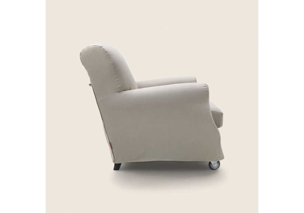 Nonnamaria firmata da Design Center per Flexform è una poltrona composta da struttura in legno imbottita in poliuretano; cuscino seduta imbottito in materiale indeformabile e piuma d'oca; rivestimento in pelle o tessuto.
