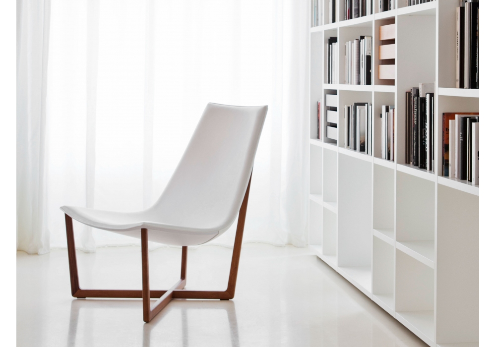 Jade firmata da Christophe Pillet per Porro è una poltrona composta da struttura in noce canaletto o frassino e scocca imbottita in pelle o ecopelle. Il tavolo Shahan è il complemento ideale della poltrona Jade, richiamandone le finiture e la struttura portante in legno incrociato.