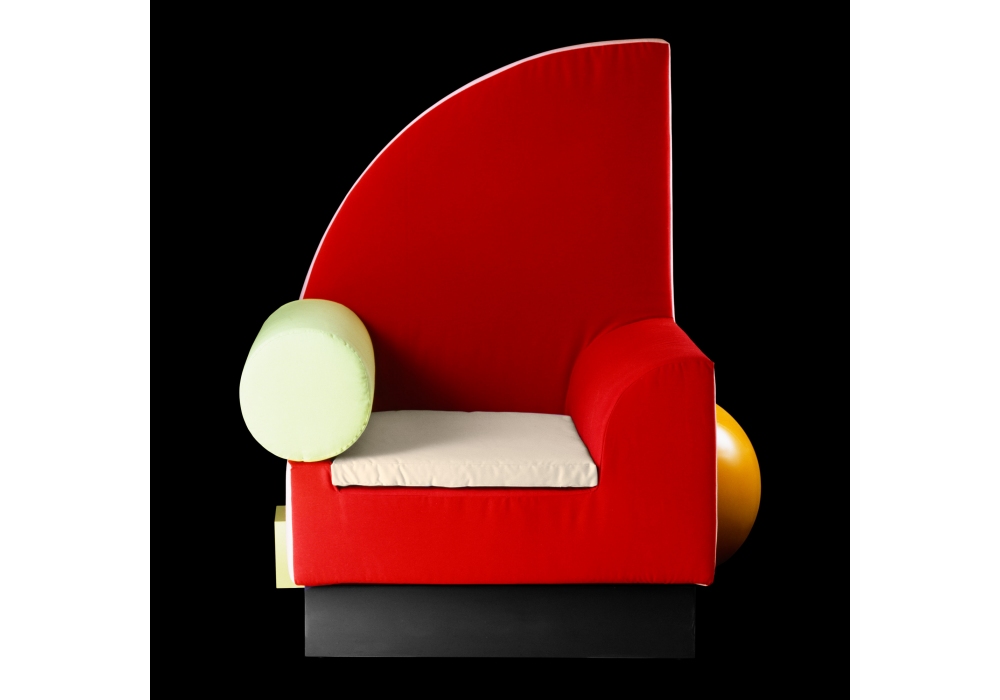 Bel Air Cotone firmata da Peter Shire per Memphis Milano è un poltrona realizzata con struttura in legno e rivestimento in cotone.