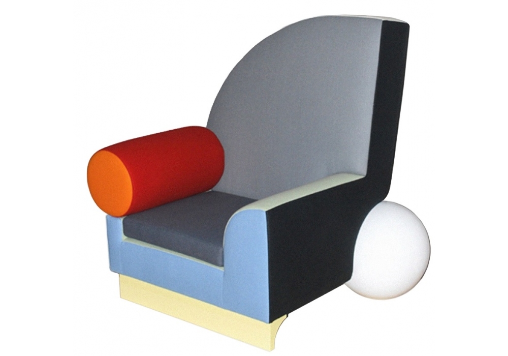 Bel Air Winter firmata da Peter Shire per Memphis Milano è una poltrona realizzata in tessuto di lana e cotone realizzata. Edizione limitata di 7 pezzi.