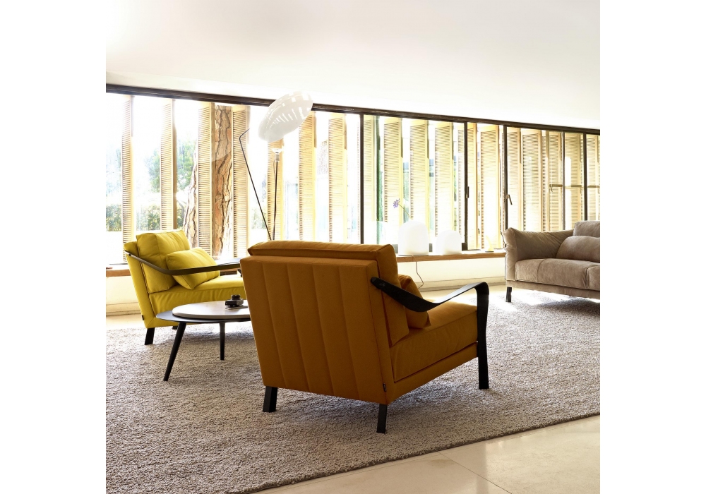 Cityloft firmata da Pascal Mourgue for Ligne Roset è una poltrona con struttura in alluminio laccato nero. I cuscini dello schienale e della seduta sono in poliuretano espanso Bultex ad alta resilienza. Rivestimento in tessuto o pelle.