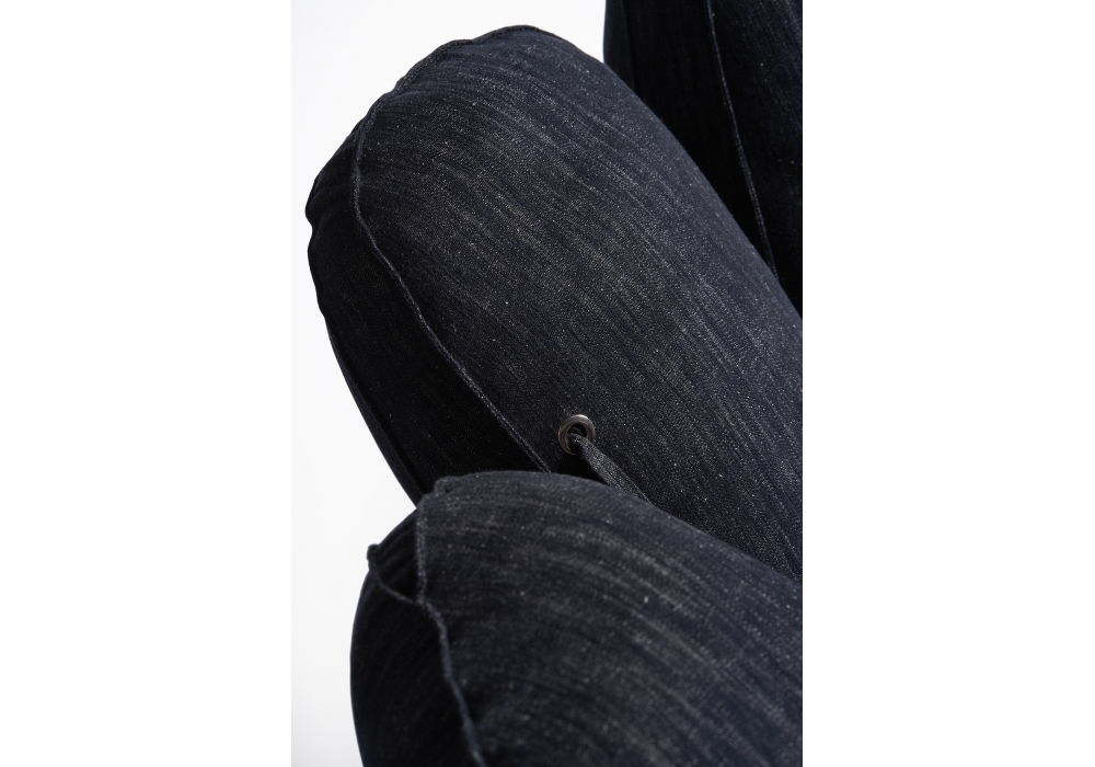 Joe Jeans firmata da De Pas, D'Urbino, Lomazzi per Poltronova è una poltrona montata su ruote invisibili realizzata con telaio in acciaio, imbottitura in poliuretano preformato e rivestimento in jersey di cotone e seta di alta qualità.