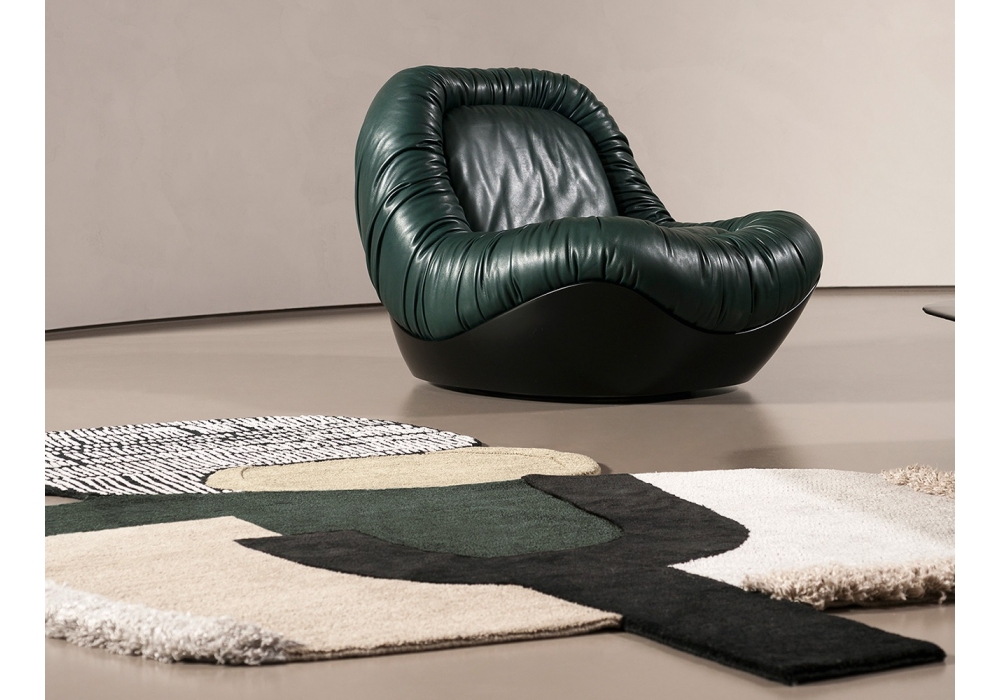 Barret firmata da Draga & Aurel per Baxter è una poltrona con basamento girevole in metallo verniciato nero opaco. Struttura in polimex con imbottitura in poliuretano espanso a densità differenziata con rivestimento in fibra acrilica. Rivestimento solo in pelli morbide.