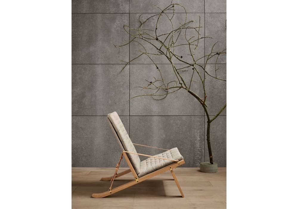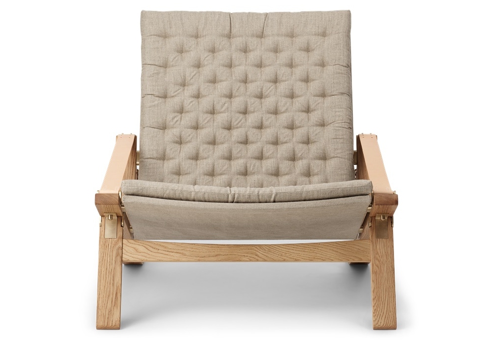 FK10/FK11 Plico Chair firmata da Fabricius & Kastholm per Carl Hansen & Søn è una poltrona pieghevole con struttura in legno massello di rovere. Rivestimento in tela canvas naturale (100% lino), braccioli e fascette in cuoio naturale. Disponibile in due versioni.