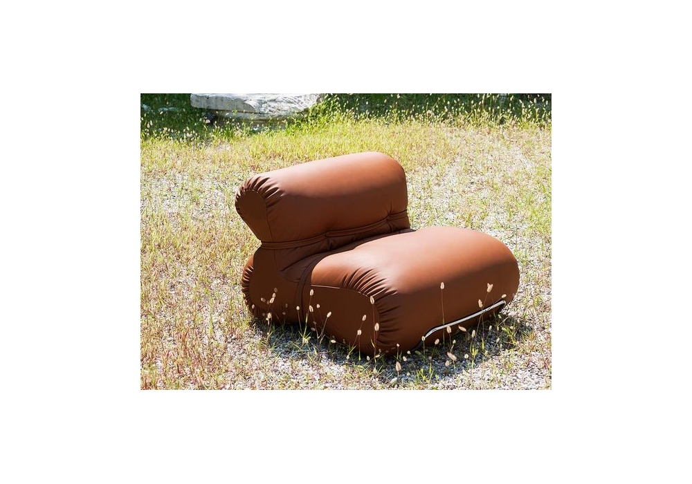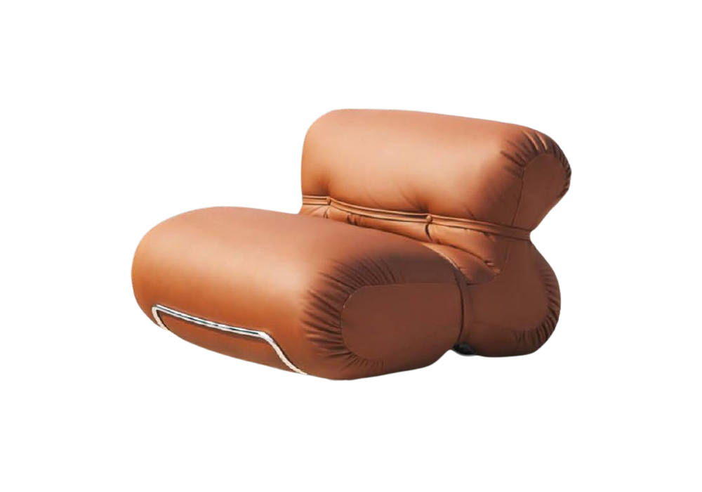Orsola firmata da Gastone Rinaldi per Tacchini è una poltrona imbottita con struttura arrotondata in metallo cromato. Il rivestimento è realizzato a mano da maestri tappezzieri.