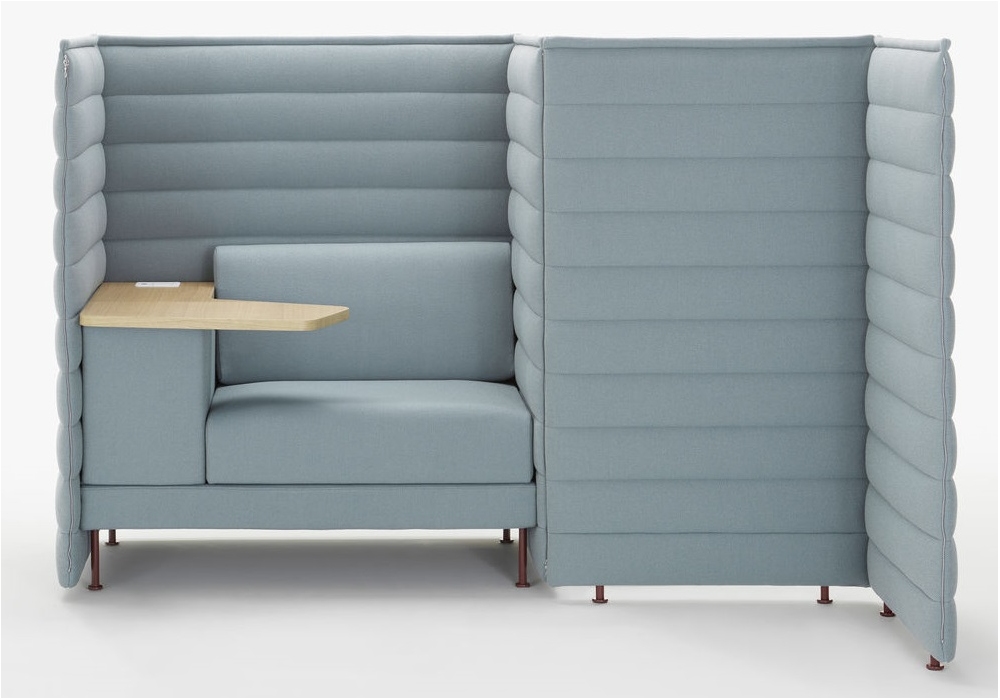 Alcove Plus Work firmata da Ronan & Erwan Bouroullec per Vitra è una poltrona con scrivania porta laptop. Realizzata con telaio metallico con pannello di base in MDF, pannelli laterali e posteriori collegati con cerniere e cuscini del sedile e dello schienale in schiuma poliuretanica e fibra di poliestere. Rivestimento sfoderabile in tessuto. Su richiesta è possibile aggiungere altri pannelli.