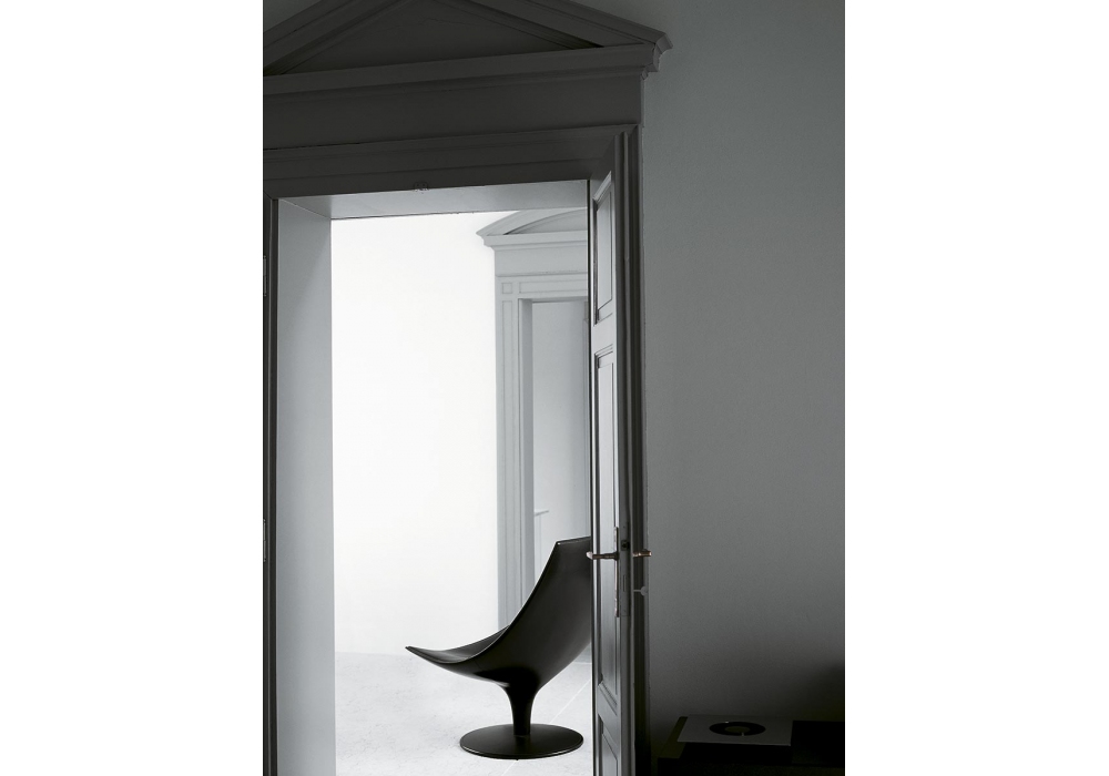 Moon firmata da Pietro Arosio per Tacchini è una poltrona con struttura in poliuretano rigido e resina. La scocca è verniciata lucida, in diverse finiture. Il rivestimento della seduta non è sfoderabile, disponibile in diverse finiture. Girevole 360°.