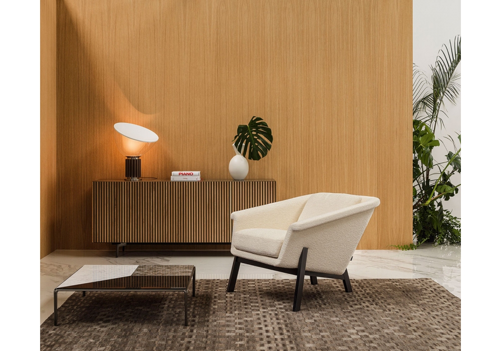 Sienna firmata da Studio Balutto per Casamania & Horm è una poltrona realizzata con basamento in frassino massello nero, scocca in poliuretano espanso ignifugo schiumato a freddo, cuscino di seduta e schienale imbottiti in piuma d’oca. Rivestimento in pelle, ecopelle o in tessuto.