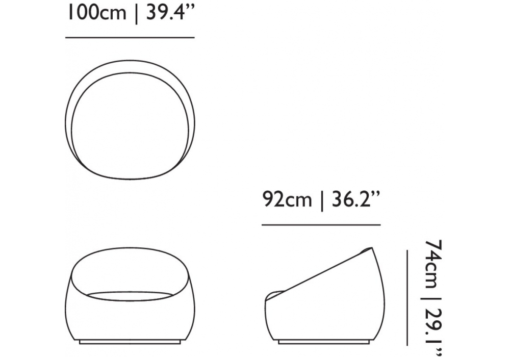 Hana firmata da Simone Bonanni per Moooi è una poltrona circolare imbottita con struttura in metallo, disponibile nella versione fissa o girevole. Rivestimento in tessuto o pelle.