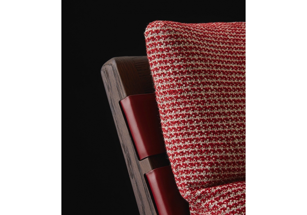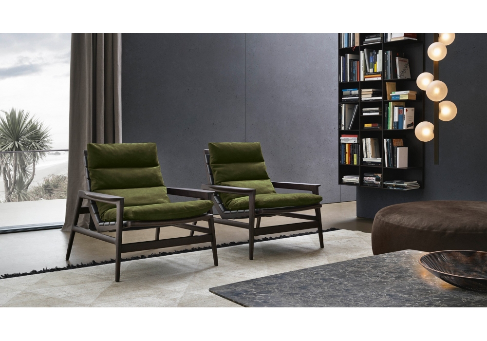 Ipanema firmato da Jean Marie Massaud per Poliform è una poltrona realizzata con struttura in legno massello, seduta con cinghie in cuoio e cuscino seduta con imbottitura in piuma, pre-rivestimento in tela cotone e rivestimento in tessuto o in pelle.