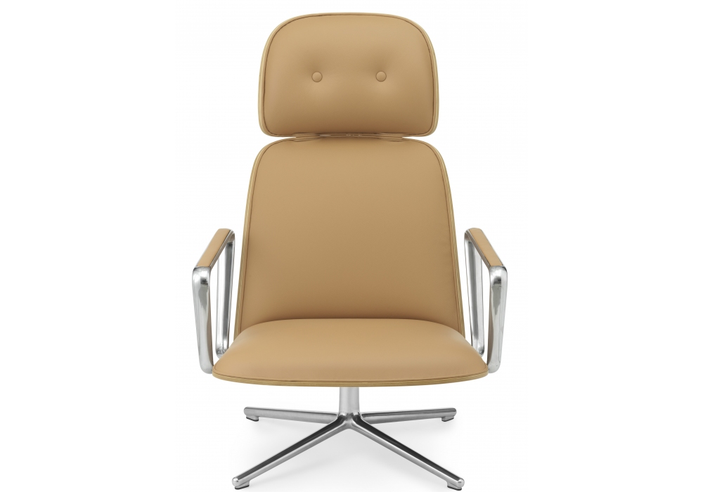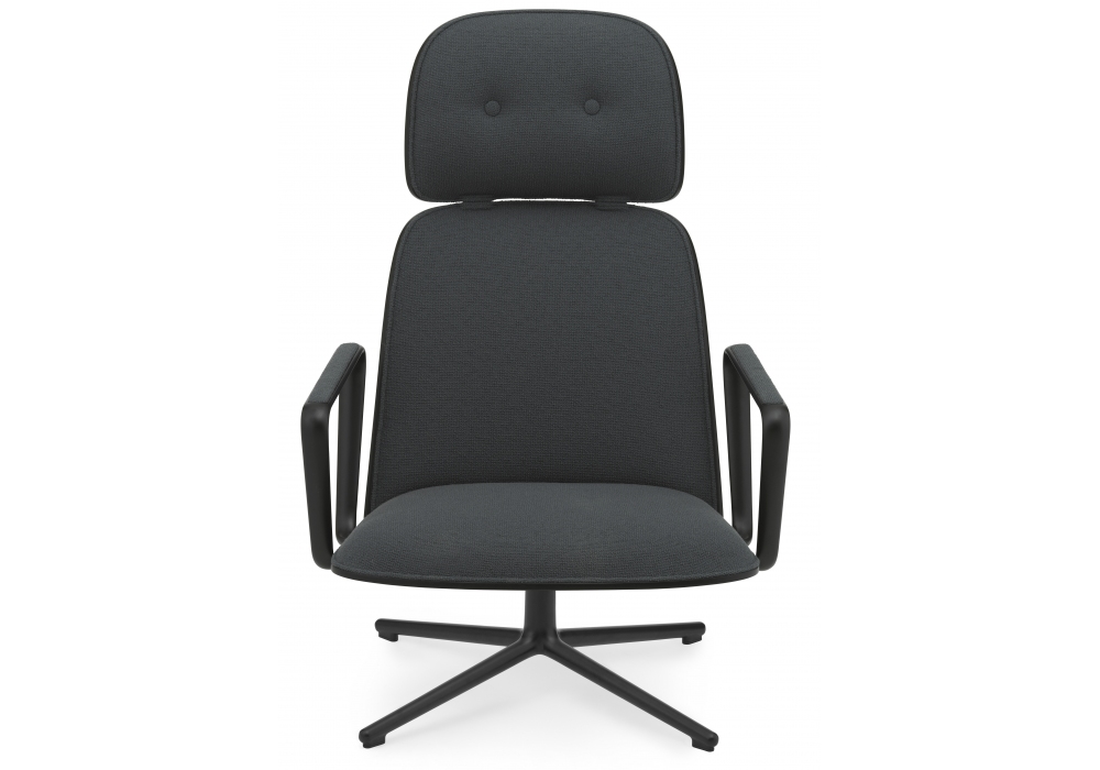 Pad, firmata da Simon Legald per Normann Copenhagen è una poltrona, con scocca in rovere o frassino verniciato, imbottita di schiuma PU e rivestita in tessuto o pelle in differenti finiture. Le gambe ed i braccioli sono in alluminio a quattro razze con base girevole, in due colorazioni, nero o nudo alluminio. Pad è disponibile in versione inclinata o versione standard.
