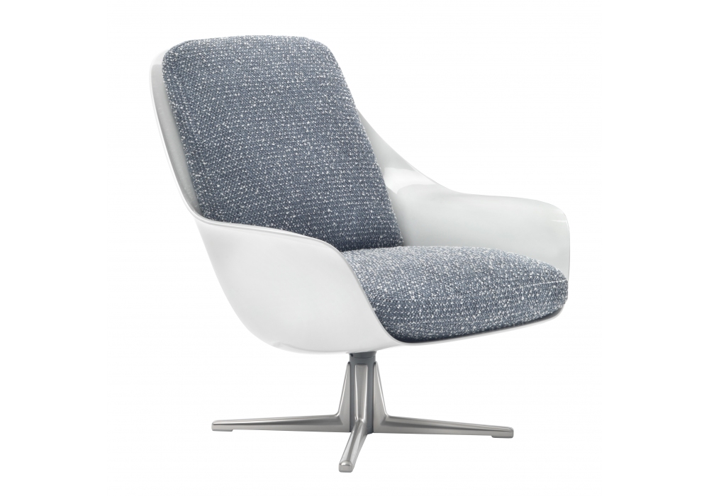 Sveva Light firmata da Carlo Colombo per Flexform è una poltrona con base in metallo disponibile nelle versioni girevole a 4 o 5 stelle, scocca in poliuretano, e cuscini di seduta e schienale imbottiti in tessuto o pelle.