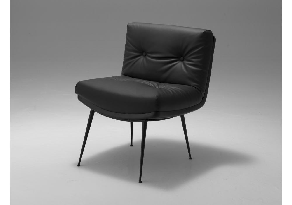 Chris firmata da ImperfettoLab è una poltrona realizzata in vetroresina e base in metallo. Seduta imbottita con rivestimento in similpelle.