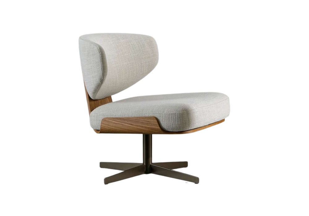 Olos firmata da Mauro Lipparini per Bonaldo è una poltrona con rivestimento non sfoderabile, disponibile in diversi tessuti e colori. La struttura è in legno impiallacciato noce canaletto o rovere carbone. La base girevole è realizzata in metallo, in varie finiture.