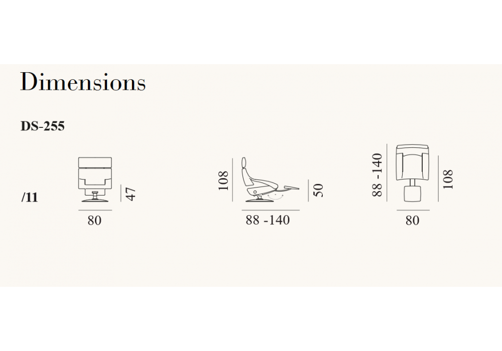 DS-255 firmata da de Sede Design Team per De Sede è una poltrona con imbottitura e struttura del sedile in acciaio con membrana superficiale elastica a punti. Placca rotante cromata opaca.