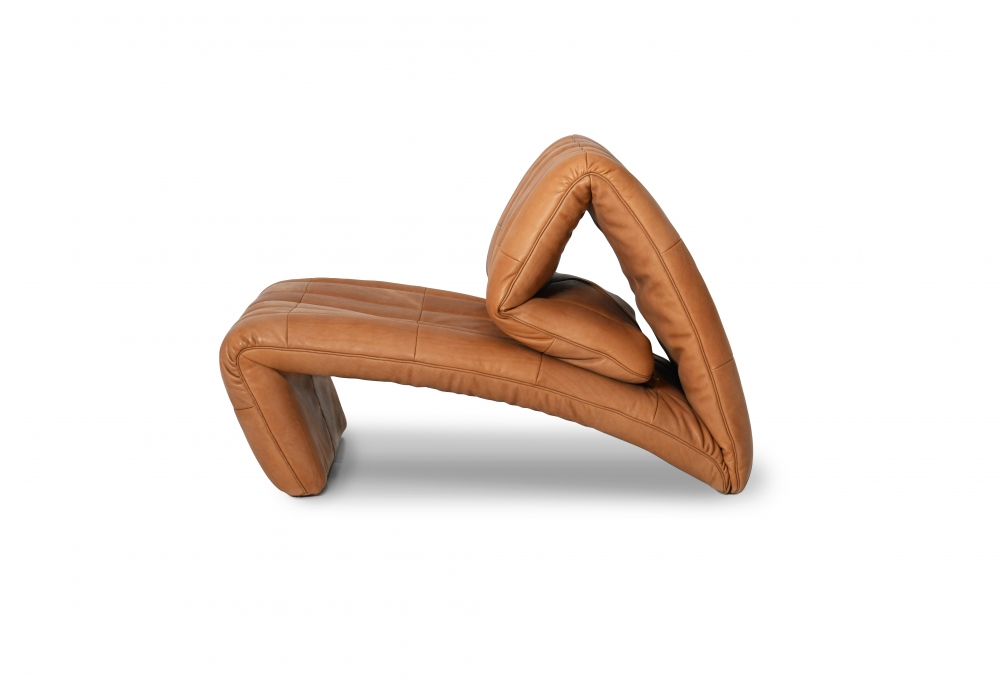 DS-266 firmata da Stefan Heiliger per De Sede è una poltrona che si trasforma, dalla posizione eretta può assumere immediatamente una posizione diversa. Rivestimento in tessuto o pelle in differenti finiture.