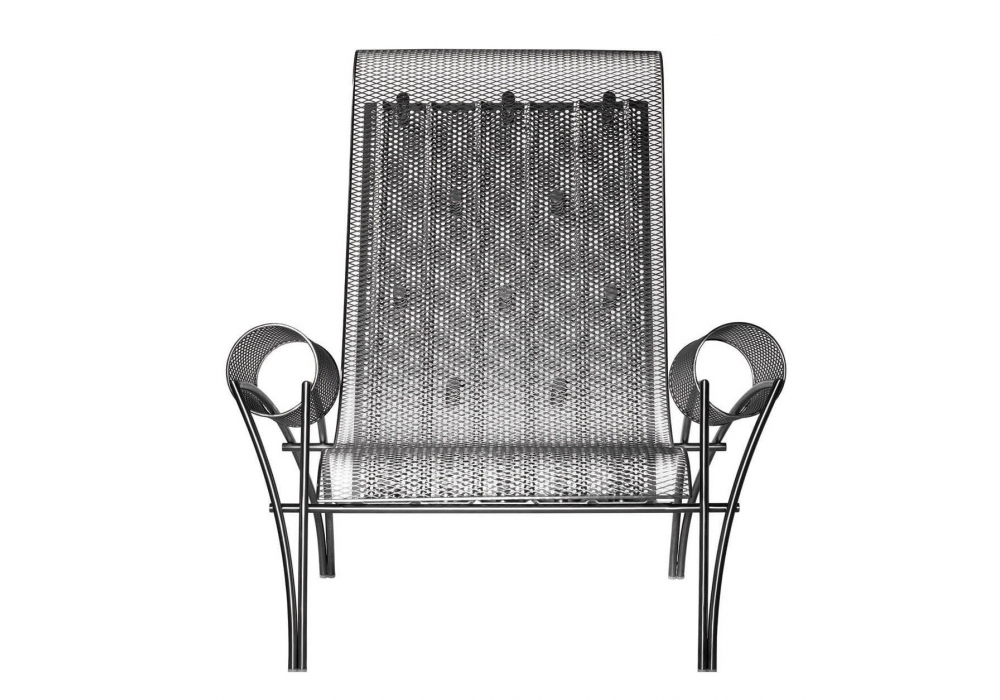 Suki firmata da Toyo Ito per Driade è una poltrona con struttura in tubo di acciaio inox satinato. Seduta in lamiera di acciaio inox forata. Uso solo interno.