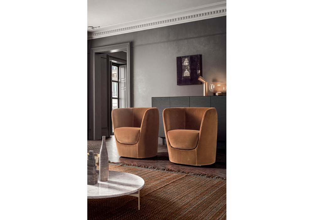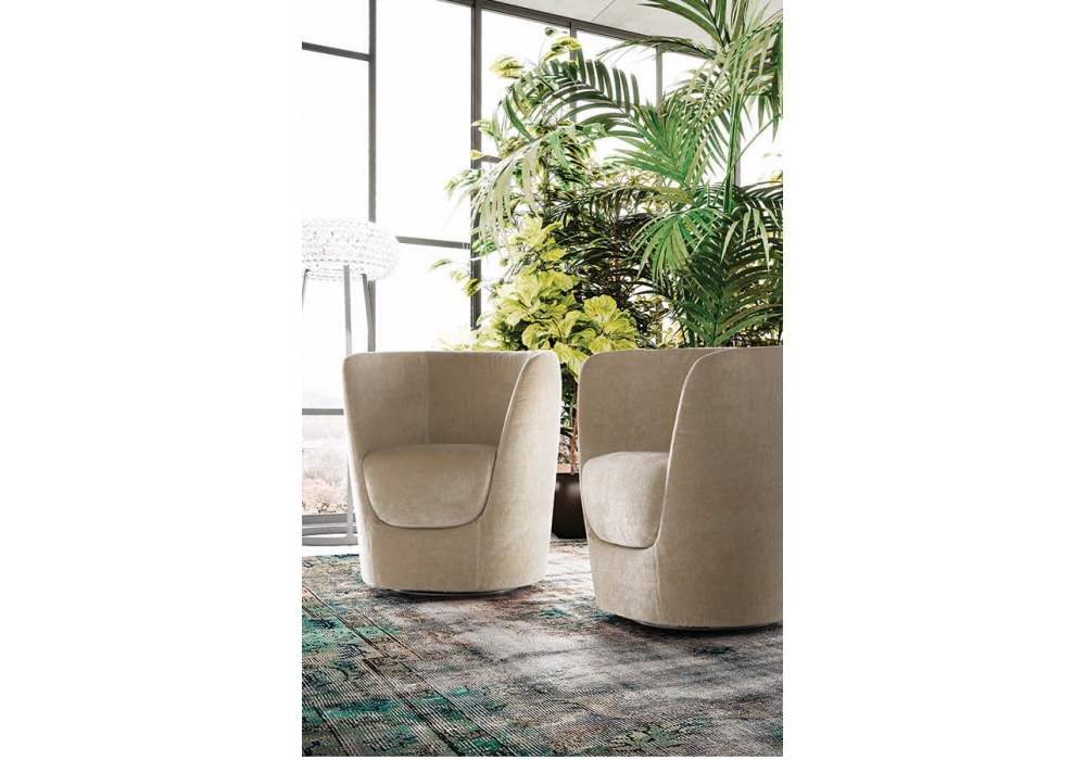 Oplà firmata da Pianca è una poltrona realizzata con struttura e cuscino di seduta in poliuretano espanso e basamento interno in metallo fisso o rotante. Rivestimento in tessuto sfoderabile oppure in pelle o pelle sintetica non sfoderabile. Su richiesta può essere realizzata con rivestimento bicolore.