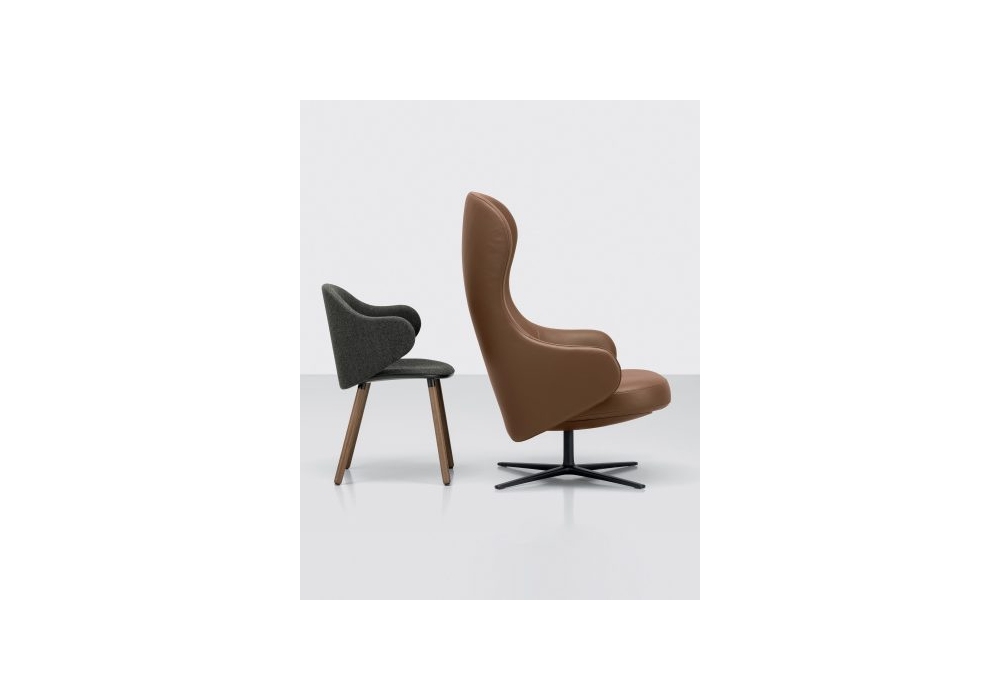 Dua Relax firmata da Läufer & Keichel per Kristalia è una poltrona su trespolo girevole con meccanismo autopesante. Base in alluminio lucidato o verniciato, scocca imbottita con rivestimento disponibile in tessuto o pelle in un'ampia gamma di colori.