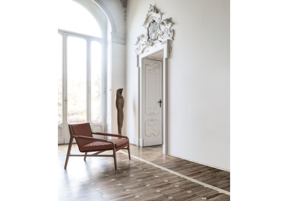 Margot firmata da Giuseppe Bavuso per Alivar è una poltrona realizzata con struttura in massello di frassino verniciato o di noce nazionale. Monoscocca in lamiera forata verniciata, rivestita in pelle con inserto in gomma poliuretanica. Cuscino seduta in gomma poliuretanica e fodera in fibra di poliestere, rivestito in pelle. In tessuto su richiesta.