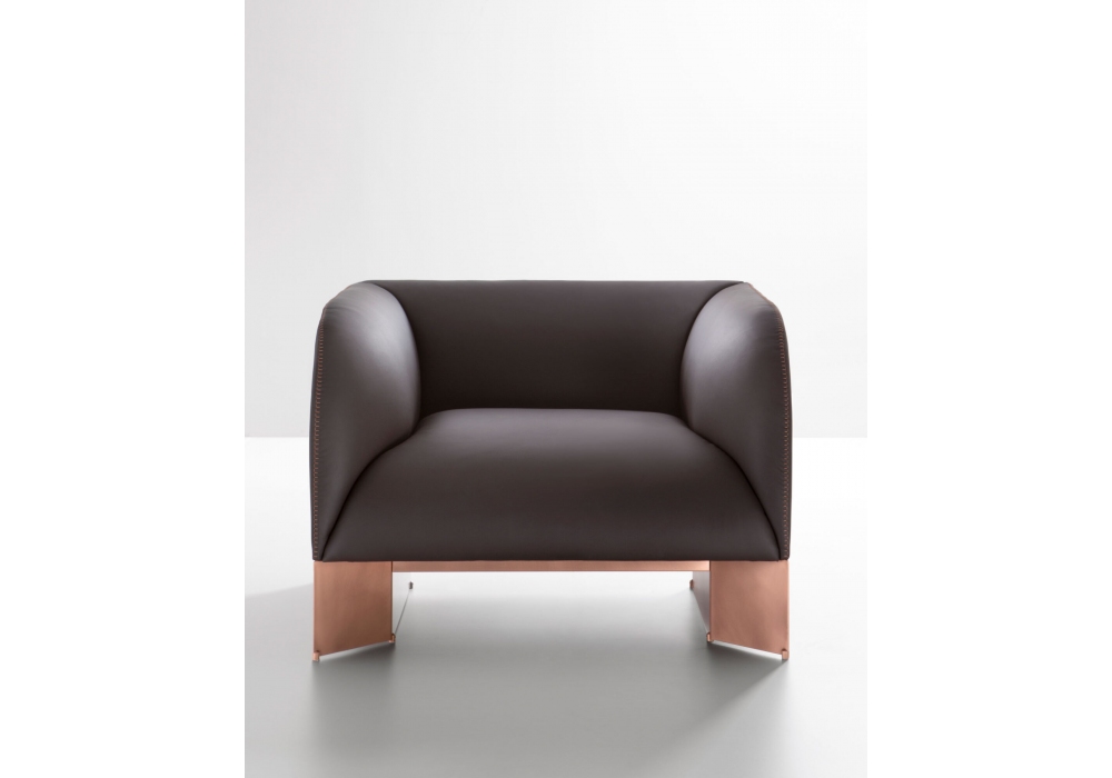 Caravan firmata da Emilio Nanni per DeCastelli è una poltrona con schienale e braccioli in metallo. Struttura monoscocca in legno con imbottitura della seduta in poliuretano espanso. Rivestimento in pelle. Disponibile in diverse finiture.