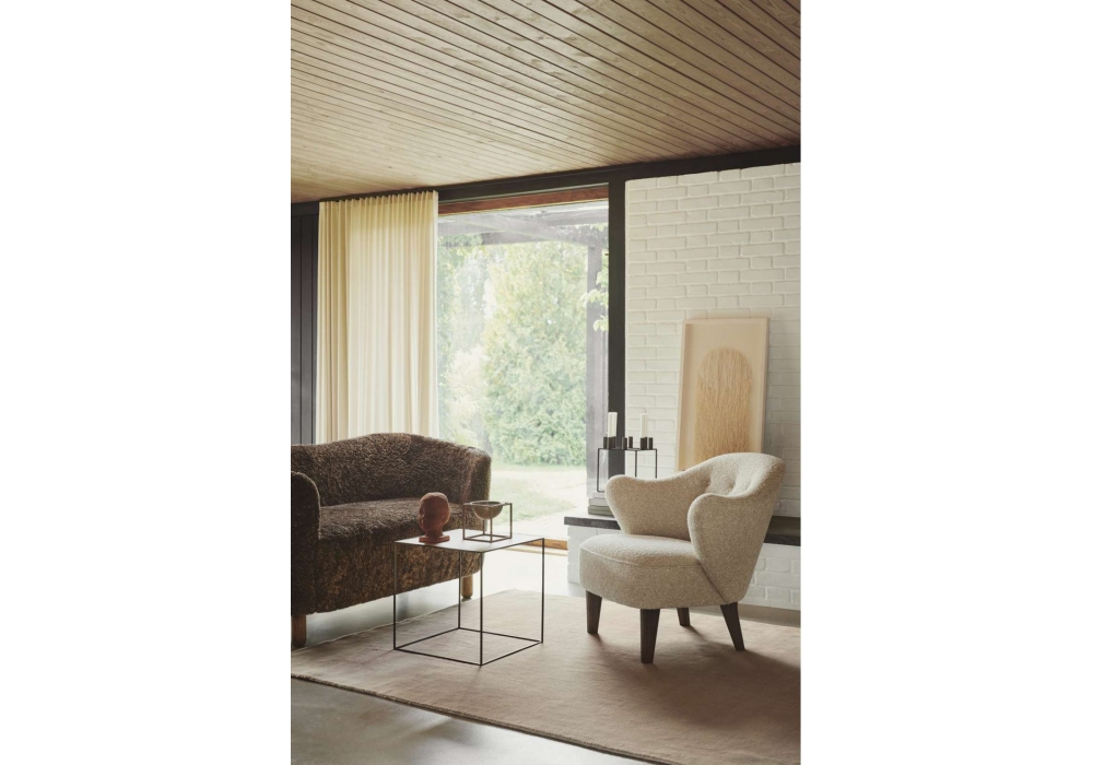 Ingeborg firmata da Flemming Lassen per Audo Copenhagen è una poltrona realizzata in pelle o tessuto e gambe in legno di rovere. Disponibile in diversi rivestimenti.