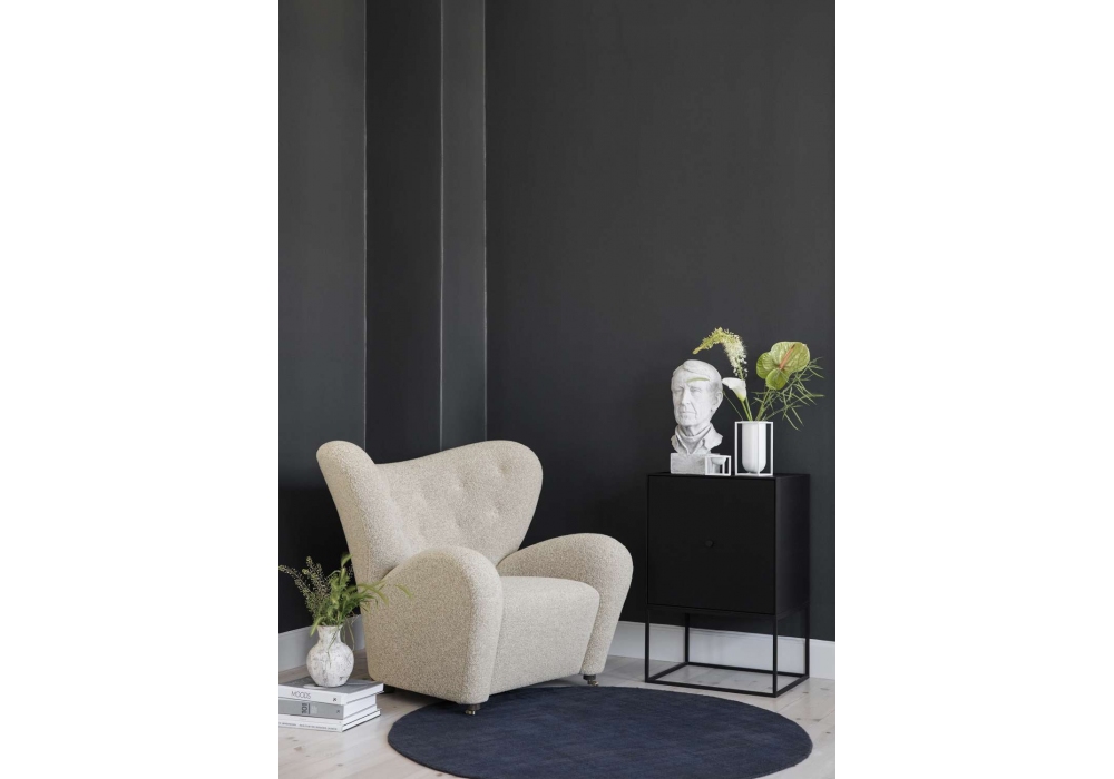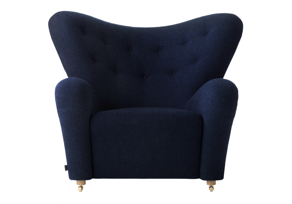 The Tired Man firmata da Flemming Lassen per Audo Copenhagen è una poltrona realizzata in pelle o tessuto, gambe in legno di rovere e ruote in ottone massiccio. Disponibile in diversi rivestimenti.
