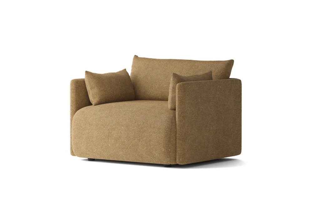 Offset firmata da Norm Architects per Audo Copenhagen è una poltrona con struttura in legno, cuscini imbottiti in piuma e gomma piuma. Rivestimento in tessuto, disponibile in diverse finiture.