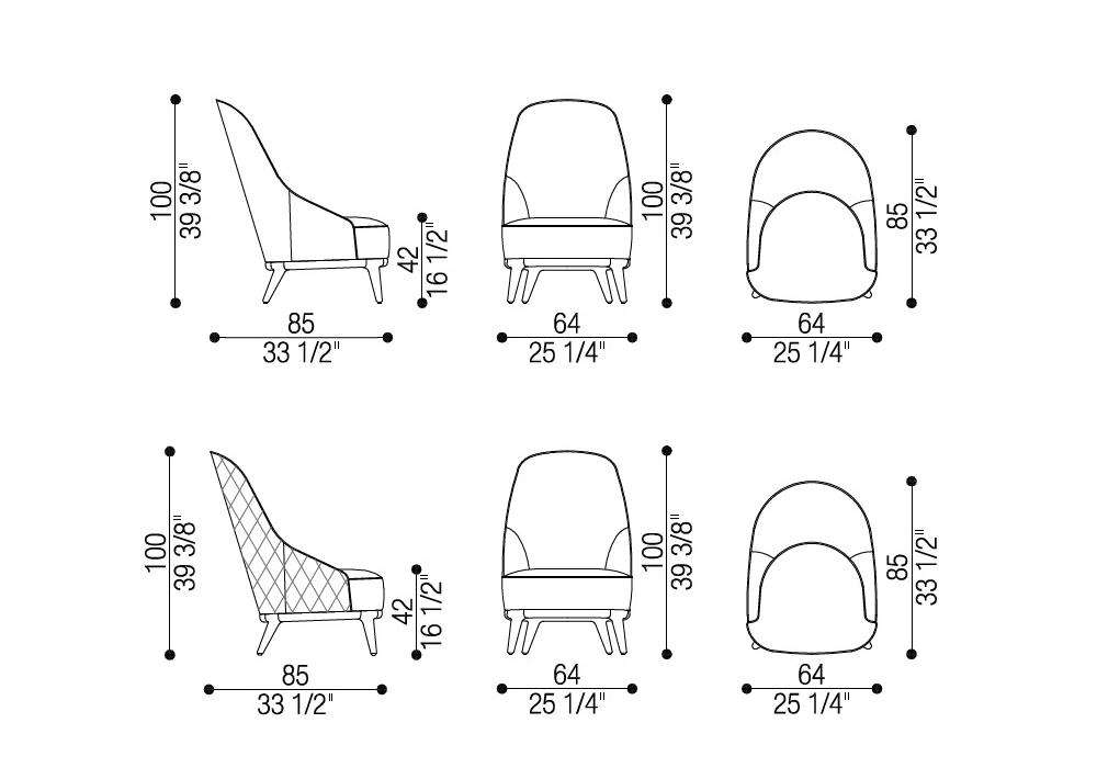 Leslie firmata da Castello Lagravinese Studio per Opera Contemporary è una poltrona con scocca liscia o a rombi, imbottita in gomma con gambe in legno, disponibile in diverse finiture. Rivestimento non sfoderabile in pelle o in tessuto.