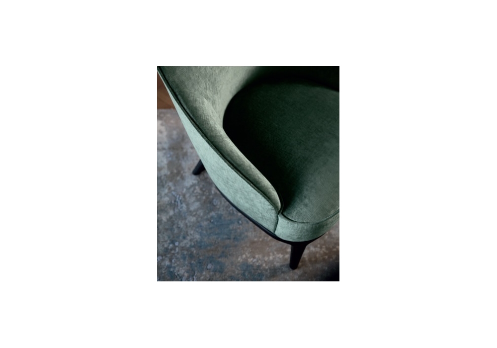 Sally firmata da Castello Lagravinese Studio per Opera Contemporary è una poltrona imbottita con struttura in legno e rivestimento non sfoderabile in tessuto o in pelle.