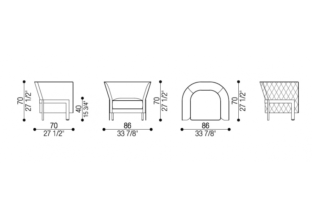 Cosmo firmata da Castello Lagravinese Studio per Opera Contemporary è una poltrona imbottita con struttura in legno di pioppo e MDF, gambe in metallo e rivestimento non sfoderabile in tessuto o in pelle.