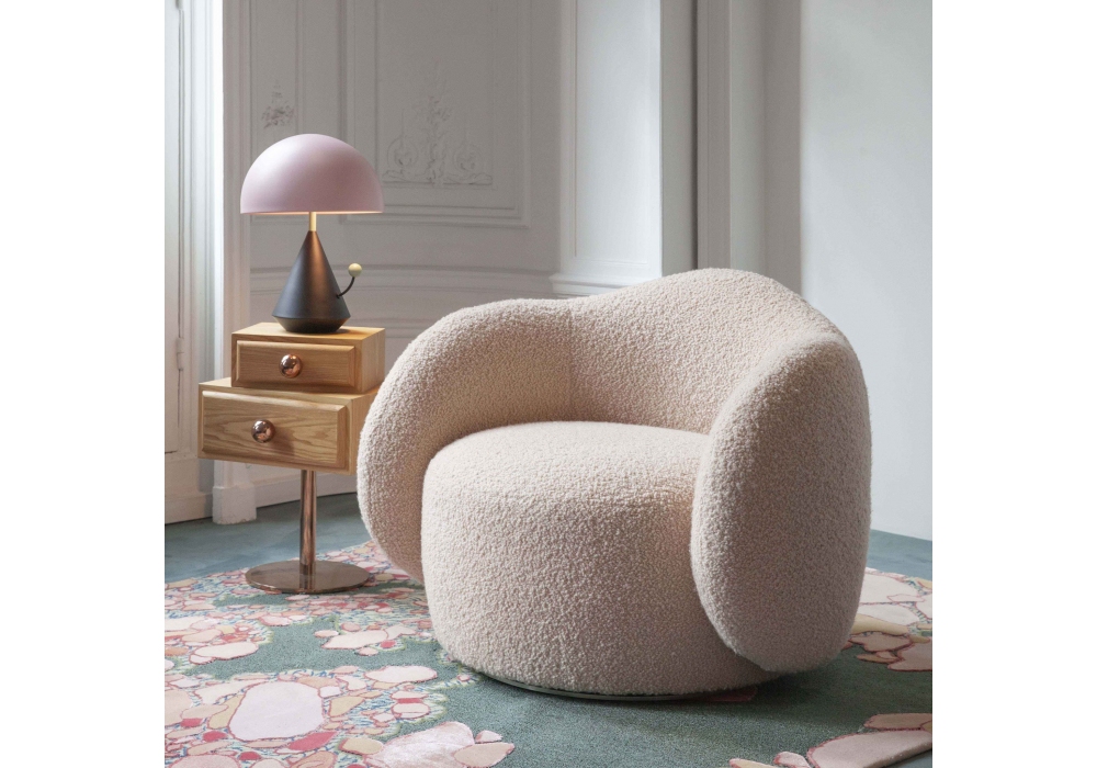 Onna firmata da Thomas Dariel per Maison Dada è una poltrona con struttura in legno massello e multistrato con base girevole in metallo. Interamente imbottita in Memory foam e rivestita in svariati tipi di tessuto.