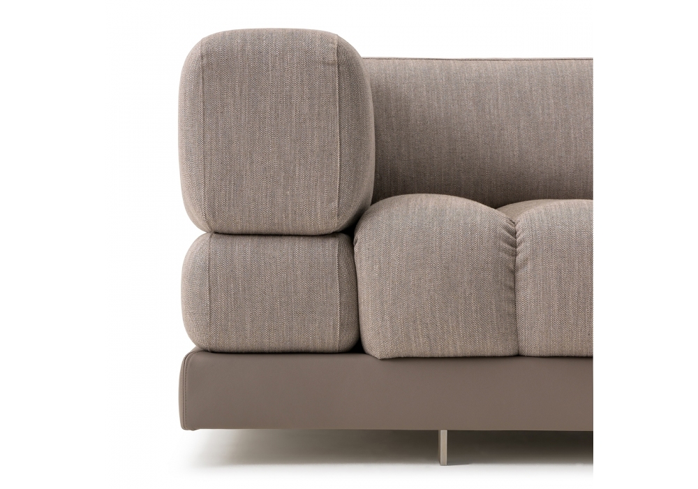 Domus firmata da Matteo Nunziati per Turri è una poltrona con struttura in legno massello e multistrato con poliuretano espanso a quote differenziate. Base e rivestimento in differenti tessuti o pelli. Piedini in metallo verniciato.