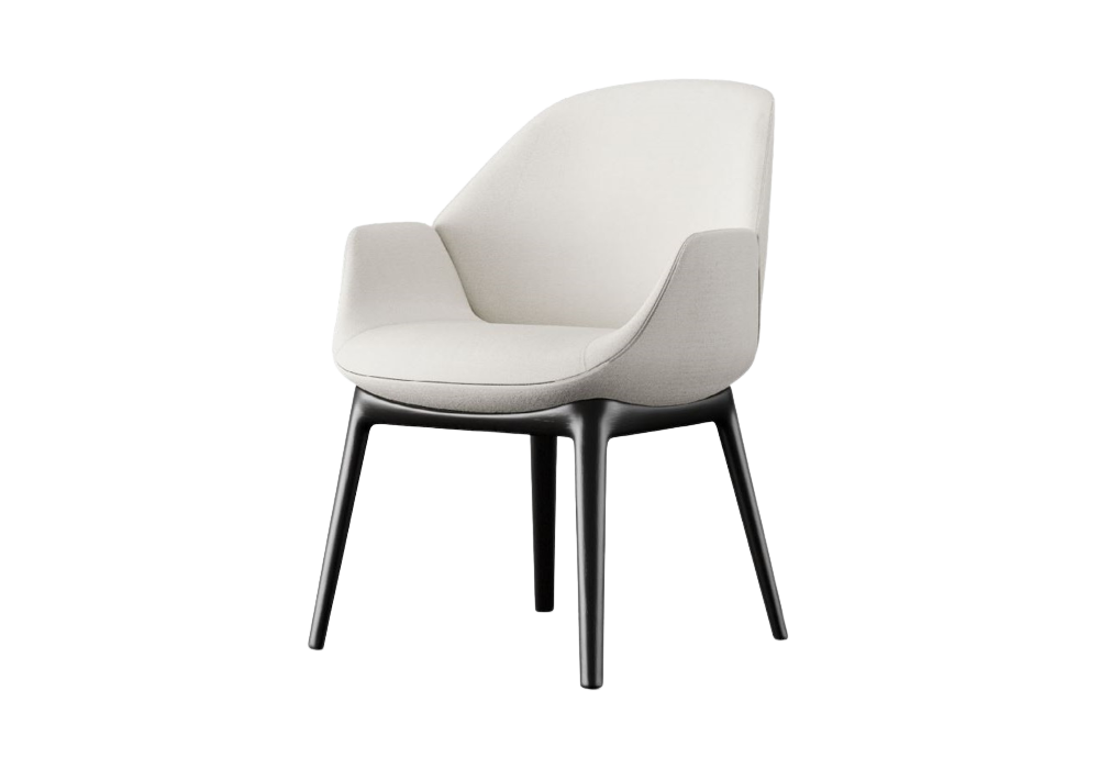 Calathea firmata da Roberto Lazzeroni per Giorgetti è una poltrona da ufficio per ospite, con struttura delle gambe in legno di frassino in diverse finiture. Il rivestimento è disponibile in tessuto o pelle in vari colori.